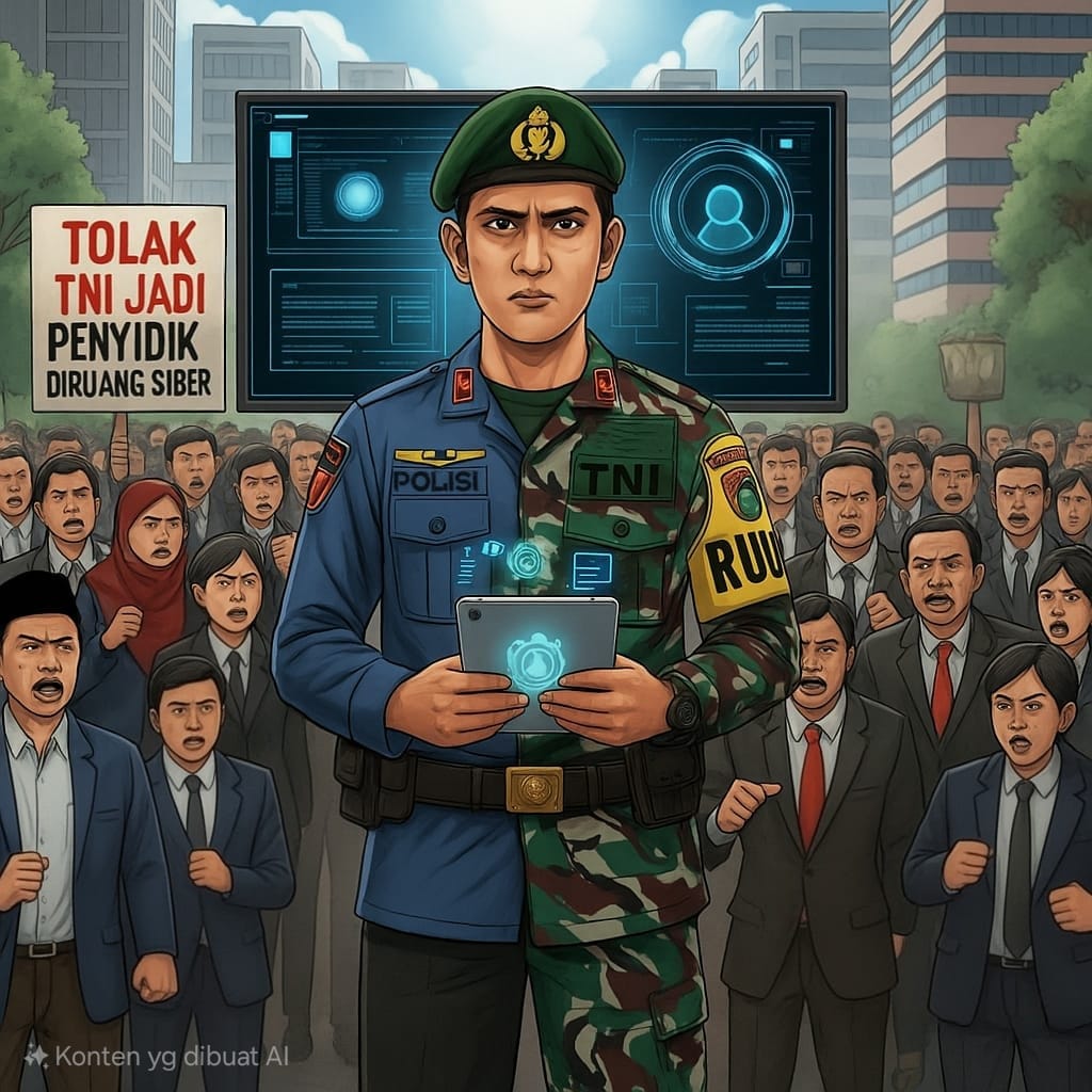 Salah satu poin paling kontroversial adalah pasal yang mengatur TNI sebagai penyidik tindak pidana keamanan dan ketahanan siber. Menurut Koalisi, hal ini jelas bertentangan dengan Pasal 30 ayat (3) UUD 1945, yang menegaskan bahwa TNI bertugas menjaga kedaulatan negara, bukan menjalankan fungsi penegakan hukum.