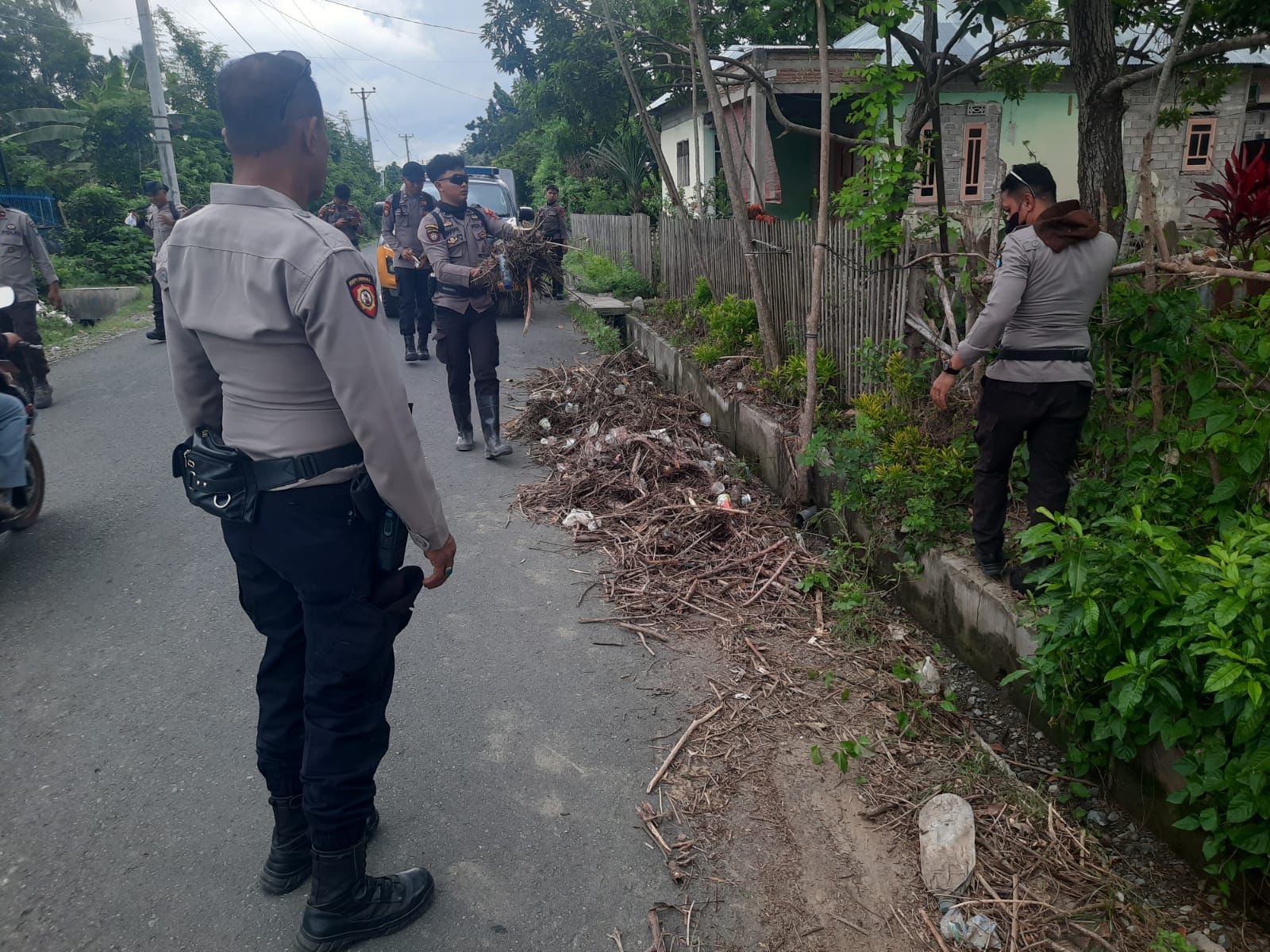 Di lapangan, personel gabungan tim dibagi ke sejumlah titik untuk pembersihan rumah warga, hunian sementara, serta pembangunan jembatan gorong-gorong menuju Desa Labuan Lumbubaka, Kecamatan Labuan. Kapolres Donggala AKBP Angga Dewanto Basari, S.I.K., M.Si., turut meninjau langsung lokasi pembangunan guna memastikan pengerjaan berjalan cepat dan aman.